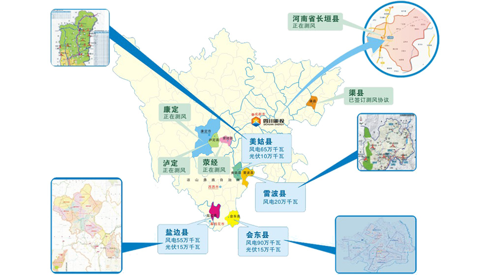 电力类业务主要以风电、光伏发电站的投资、建设及运营为主,择优开发生物质能、光热、地热等多种形式的新能源电力类业务,跟踪、探索核能的投资机会。逐步形成覆盖西南地区、三北地区、中东部地区的全国性电站布局,在行业形成规模化竞争优势,成为公司可持续发展的重要利润来源。
